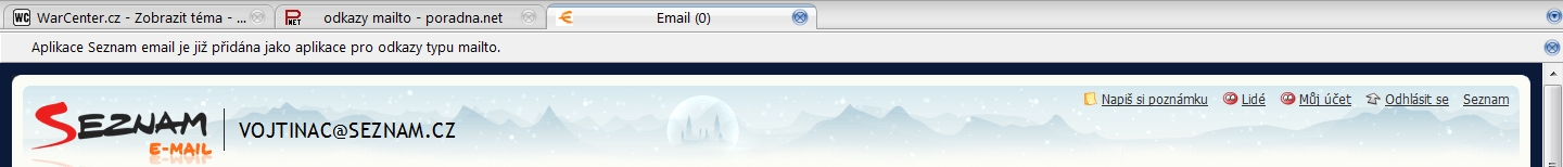 AHOJ mám mozzilu firefox a dnes jsem se přihlásila na můj email a nahoře se mi objevila lišta ,že informace-aplikace seznam email je již přidána jako aplikace pro odkazy typu mailto - co to je? jak se to dá odstranit? díky
