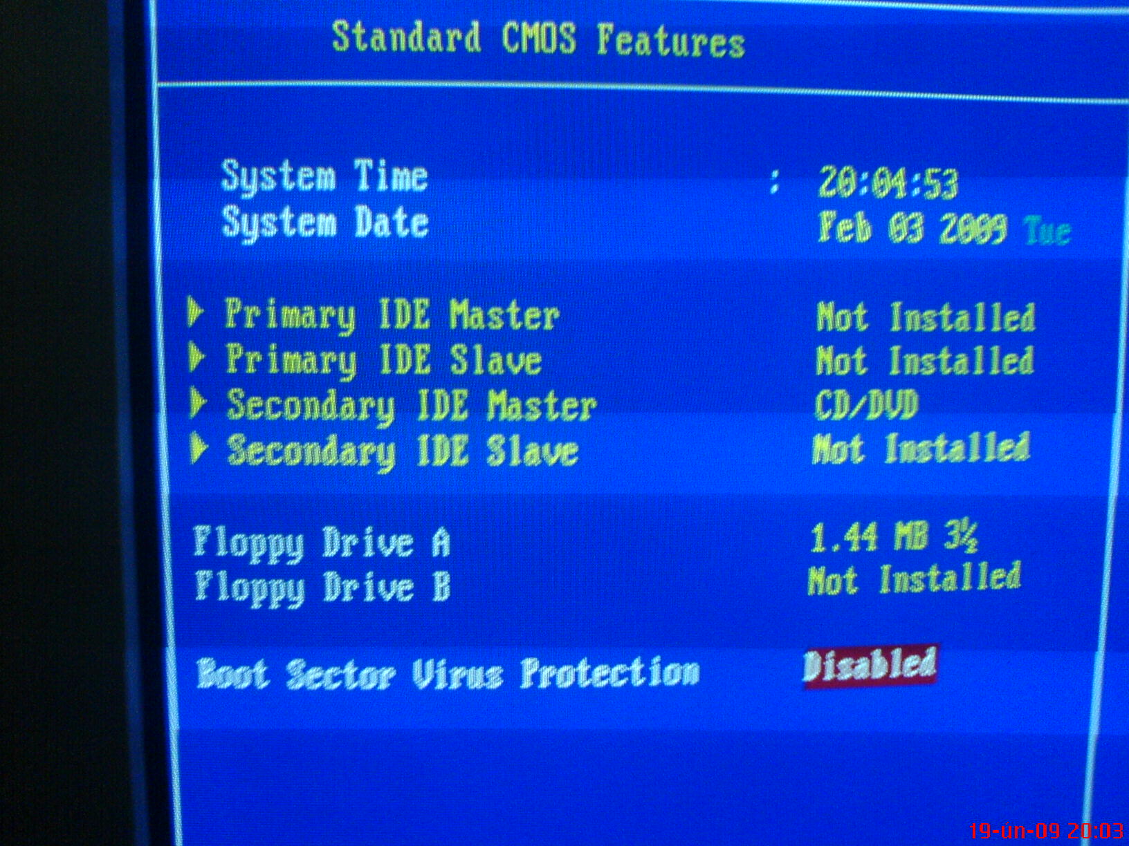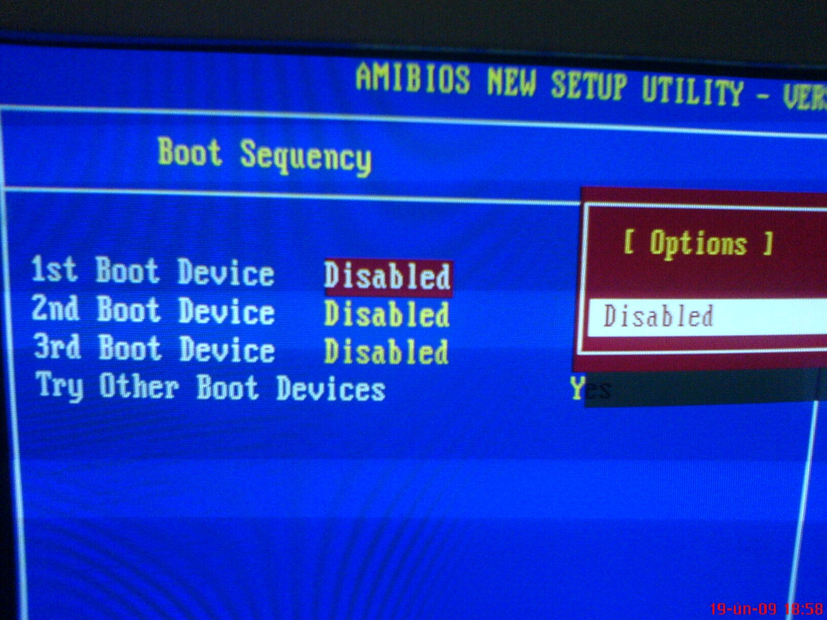 V biose (AMI BIOS) je poradi botovani ale neni tam moznost na neco to prepnout.U vsech je napsano disabled a neni tam moznost zmeny!A ani nedetekuje HD pri zapojeni CD po odpojeni ho normalne detekuje.Tak nevim?!