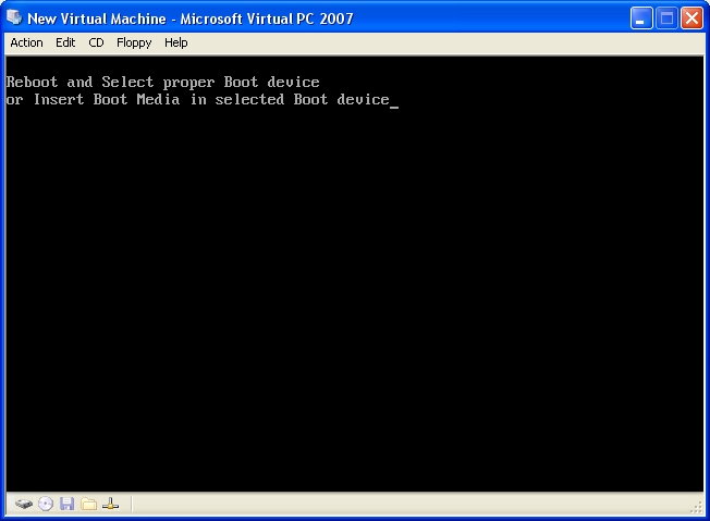 program mam ms virtual pc 2007 a chtel jsem tam nainstalovat windows xp jako mam na pocitaci abych na to virtualnim pc mohl tak trochu blbnout a tak jsem si ho nainstaloval vytvoril jsem si virtualni harddisk pak jsem dal start nabihato chvili a pak se nemuze nacist windows a ja nevim proc kdyz na pocitaci nainstalovanej windows mam jen se mi tam pak objevi toto