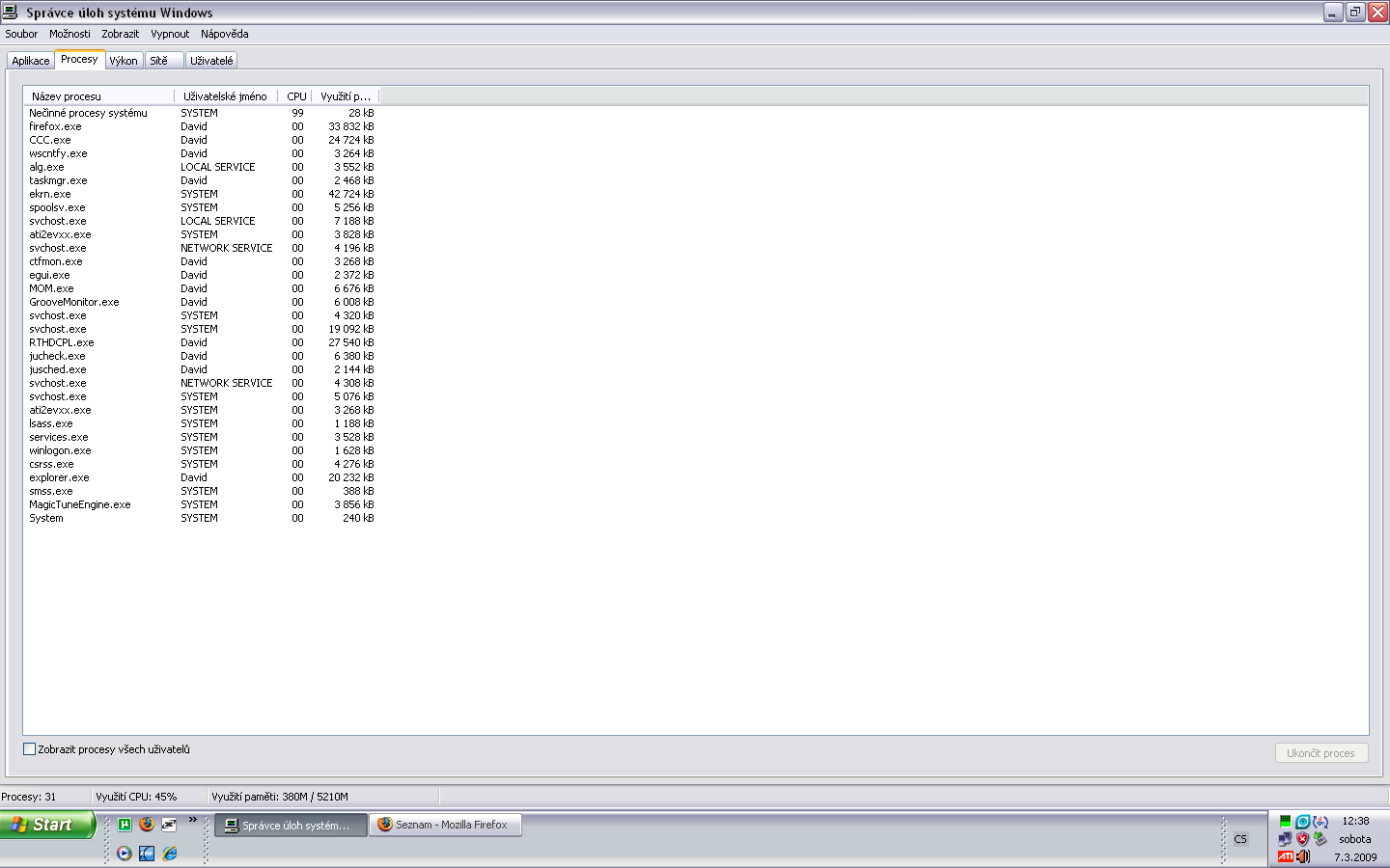 ok napíšu až se mi to stane. Dneska zatim nic což se divím,ale dám vědět jinak vyuzití CPU sem mel předchozí dny max 14%