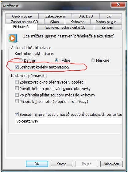 jo, ten mám taky. zkusil bych preinstalovat WMP 11 a zaškrtnout, pokud nemáš, stahovat kodeky automa…
