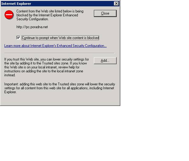 Je na serveru instalovaná komponenta vysokého zabezpečení IE?