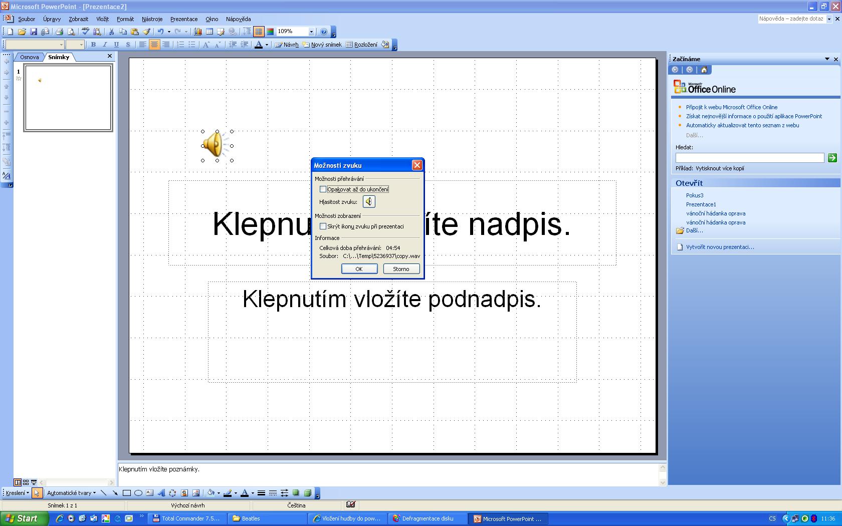 Vložení hudby do powerpointu, ale ve zvukovém souboru mp3