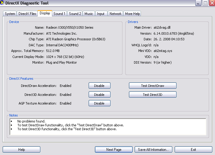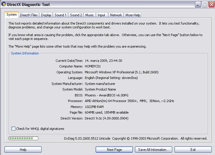 co viem ze 2x 512MB RAM DirectX :Directx Version 9.0c (máj 2008)