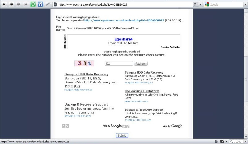 Opsal jsem do firefoxu tu adresu, naběhla mi stránka s tlačítkem Submit, opsal jsem tři znaky z obrázku, stisknul Submit, počkal asi 10 sekund a pak se mi objevilo tlačítko Download. Normálně to chodí.