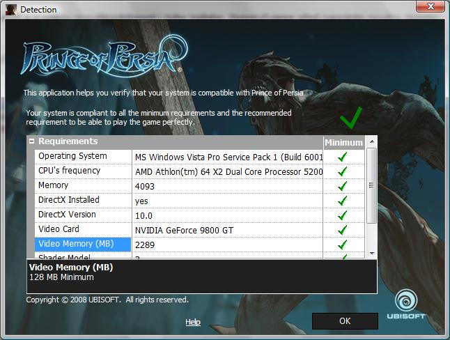 Když jsem instaloval hru Prince of Persia 4 Prodigy staženou z netu, tak mi to v jedné fázi instalace "Detection" kde to zřejmě ukazovalo minimální požadavky napsalo, že moje Video Memory je 2289!