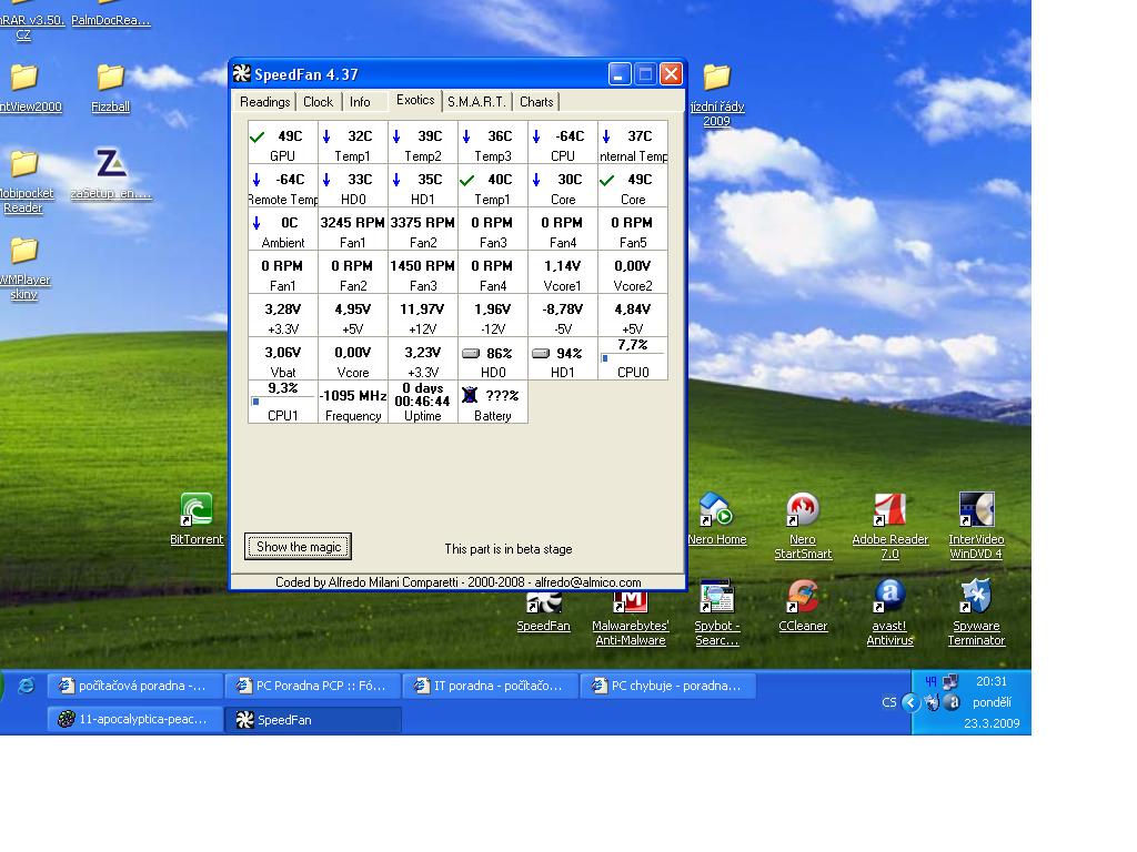myslím, že všechno v pořádku. koukni prosím na přiložený obrázek. párkrát jsem u teploty graf. karty viděla i 50 stupňů a výstražný červený plamínek, ale nikdy ne víc než těch 50. je možné, že tak najednou z ničeho nic by se začal pc přehřívat?