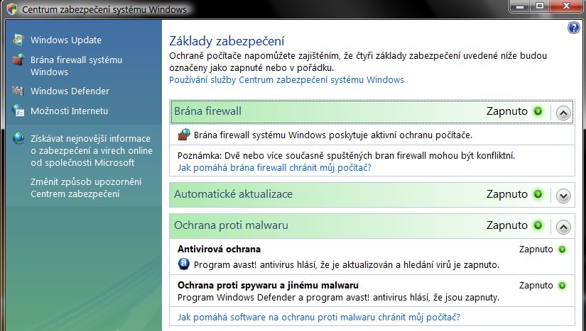 Cus lidi, chtěl sem se zeptat, jestli má antivirus Avast! Home Edition bránu firewall? V materiálech o něm je napsaný, že má rezidentní ochranu, webový, síťový, P2P a já nevím jaký další štíty, ale Centrum zabezpečení mi hlásí jen aktivní bránu firewall systému Windows (viz. obrázek). Mám tomu rozumět tak, že Avast! tedy nemá bránu firewall?
