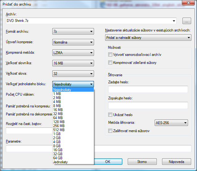 jednoliaty blok - nejednoliaty? to akoze ked by som si to pri pakovani delil povedzme na 1 MB bloky…
