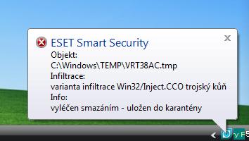 Mam nejaky problem s Visty, pri kazdy spusteni se obevi hlaska antiviru ESET, viz foto. Nemuzu se toho nejak zbavit. A dalsi problem je, ze obcas mi po nekolikatem pusteni systemu (vista) se obevi hlaska ,, doslo k neutorizovane zmene systemu windows,, pak se visty chovaji jako kopie, ze ID produktu neni k dispozici a ze nejsou aktivovane, pritom je mam original k Notebooku a pres dva roky bezproblemu. Pak musim dat z nabidky F8 posledni znama konfigurace a zas chvilku je klid. Nevite co s tim?