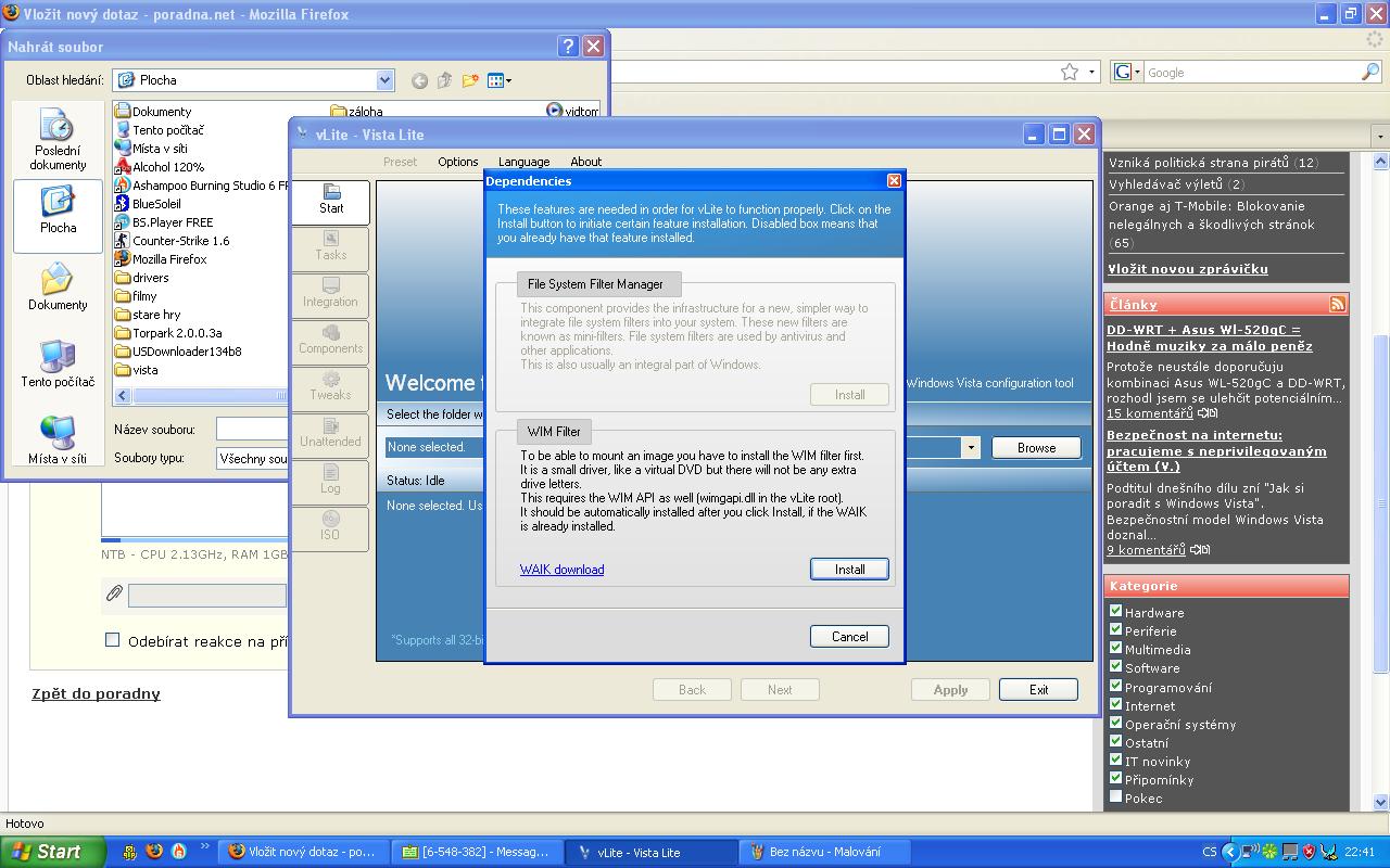 mam problém, potřebuju ve win XP upravit instalačku win Vista basic.. jenže vLite po mě chce stahnou něco, co má 1375.9 MB.. nechápu k čemu.. můžete poradit??