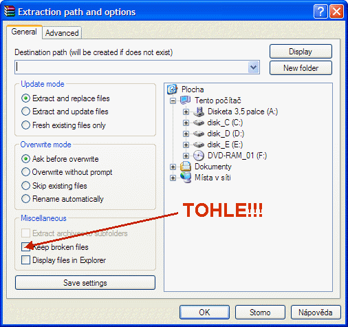 Pouzivam WinRAR a kde najdu ten prikaz :Ponechat poskozene soubory " ? Nejak to nemuzu najit... Dyztak zkusim ten 7Zip