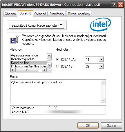 Použít výchozí hodnotu (802.11a, 802.11b nebo 802.11g), nic jinýho.