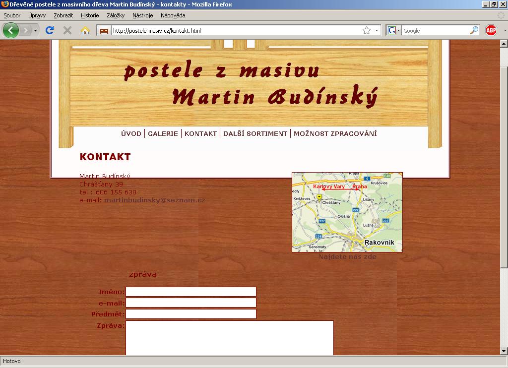<META http-equiv="keywords" content="postele,masiv,masivní,dřevo,Chrášťany,Rakovník">