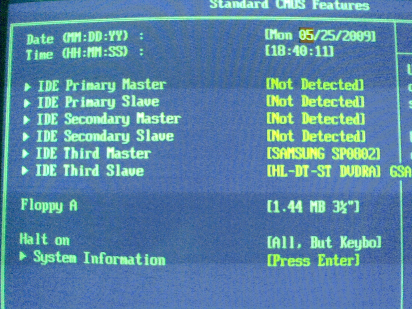 Mám HDD na jednom káblu a bios je vidí jako third master a third slave, DVD mi vůbec nechce najít.