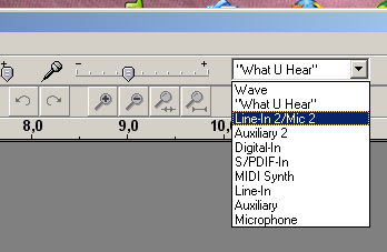 Z roletky audacity vidíš, že dokáže "naslouchat" ze všeho možného.