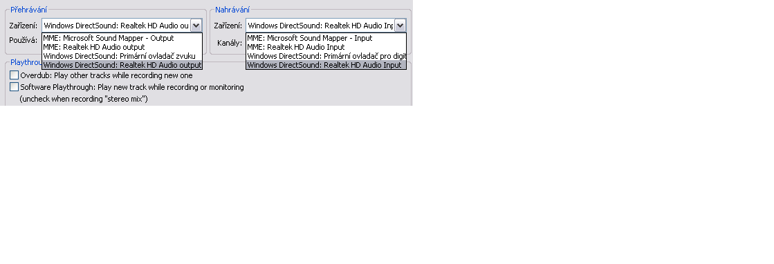 Mrknul sem na ovládací panely,zvuky a zvukové zařízení,a pak na audacity a nějak sem to srovnal.A dá…