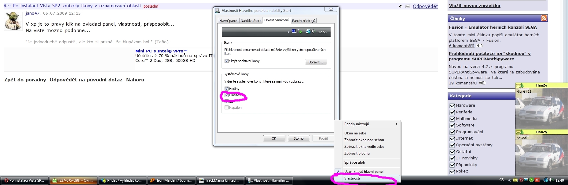 Po instalaci Vista SP2 zmizely ikony v oznamovací oblasti