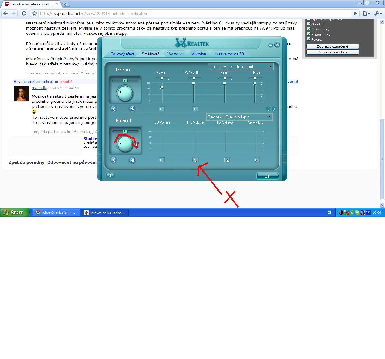 Zkus následujíci: ve zvukovce odškrtni přeškrtnutý mute u mic. vstupu