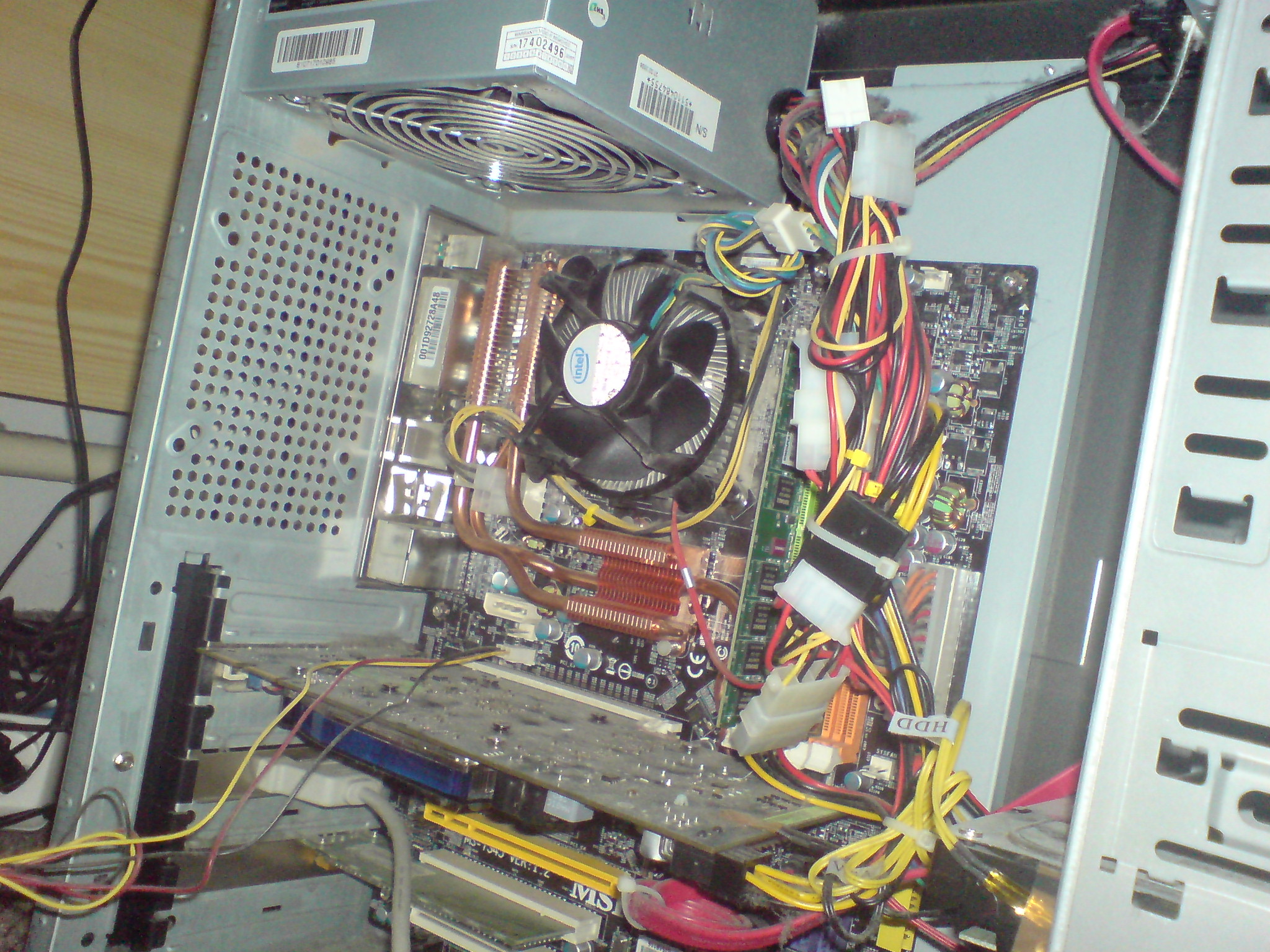 A teď k věci. Ten větrák na boku je tam trochu zbytečnej. Díru raději zalep a větrák dej na zadní stěnu bedny, kde zjevně žádnej nemáš. Potřebuješ odsávat teplej vzduch od procesoru, zatímco boční větrák ti jen rozvíří teplo od procesoru zpátky do bedny a polovička toho čerstvýho vzduchu od bočnice ti odejde rovnou do zdroje, což k chlazení nepřispěje.