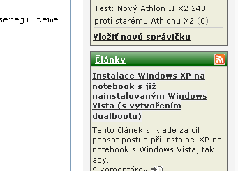 Zvláštne, ale na článkoch keď behám tuto po pravej strane myšou, tak na tom veľkom názve Instalace Windows XP na notebook s již nainstalovaným Windows Vista (s vytvořením dualbootu) sa mi podčiarknutie zruší pri nabehnutí myšou len na časti názvu "notebook s již nainstalovaným Win".