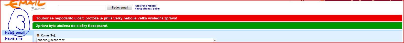 Čus odborníci.Chci-li odeslat emailem ze Seznamu např.obrázek o velikosti 3MB tak to nejde.Zobrazí se:1)probíhá ukládání emailu,2)ukazatel není k dispozici.Dřívě vše šlo v poho.Datově menší obr.(kb)odeslat jde.Dík