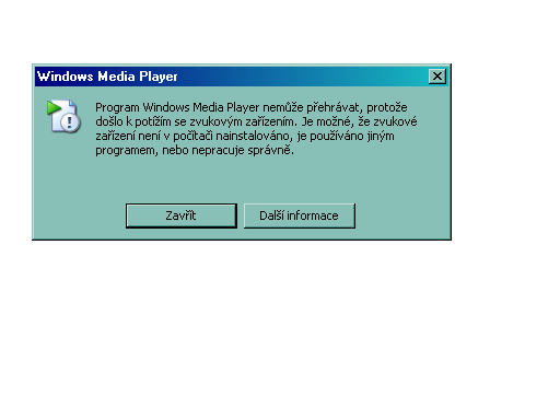 Program Windows Media Player nemůže přehrávat, protože došlo k potížím se zvukovým zařízením. Je možné, že zvukové zařízení není v počítači nainstalováno, je používáno jiným programem, nebo nepracuje správně.