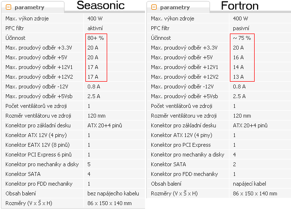 Proto bych levný zdroj (do dvou tisíc) vybíral i podle součtu proudů na 12V větvi. U dražších zdrojů by se šmejdy neměli vyskytovat(...) a proud na 12V by měli mít už všechny dostatečný.