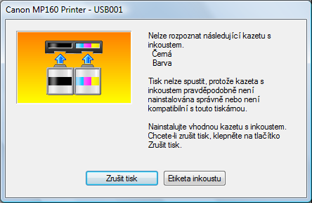 chtěl bych obnovit tento problém. Jedná se o chybu E5 (což, jak jsem se dočetl, znamená, že cartridge není nainstalovaná, nebo je špatně vložena), také na tiskárně Canon MP160. Jenom podotýkám, že tiskárna obsahuje nové (správné) originální cartridge.