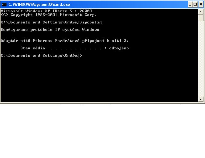 U těch notebooků mám nastavenej protokol TCP/IP všechno na automaticky. I když tam zkusím zadat adresy ručně, tak to nepomůže. U toho počítače jsem včera ještě před tím než jsem to instaloval zformátoval disk, potom jsem nainstaloval service pack 2. Kdyžtak jenom pro ukázku dodám nějaké screenshoty z konfigurace TCP/IP a výpis ipconfig
