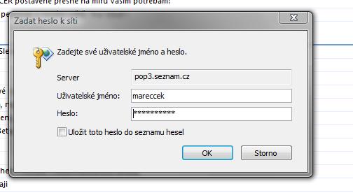 Zase takovej laik nejsem tohleto chápu dokonale, ale po kliknutí na "uložit toto heslo do seznamu hesel" a poté kliknutí na OK se mi tohle okno ukáže znovu. Mám avast! 4 home a do teďka to fungovalo. Nastavení Otlooku mám přesně podle toho předchozího návodu...