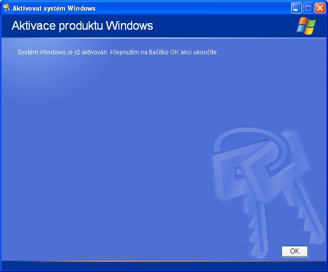 P.S. to dotazovatel: jak presne to pise "ze to je aktivovane"? Prazdne okno s textom "Windows je uz aktivovany" a len tlacitko "OK"?