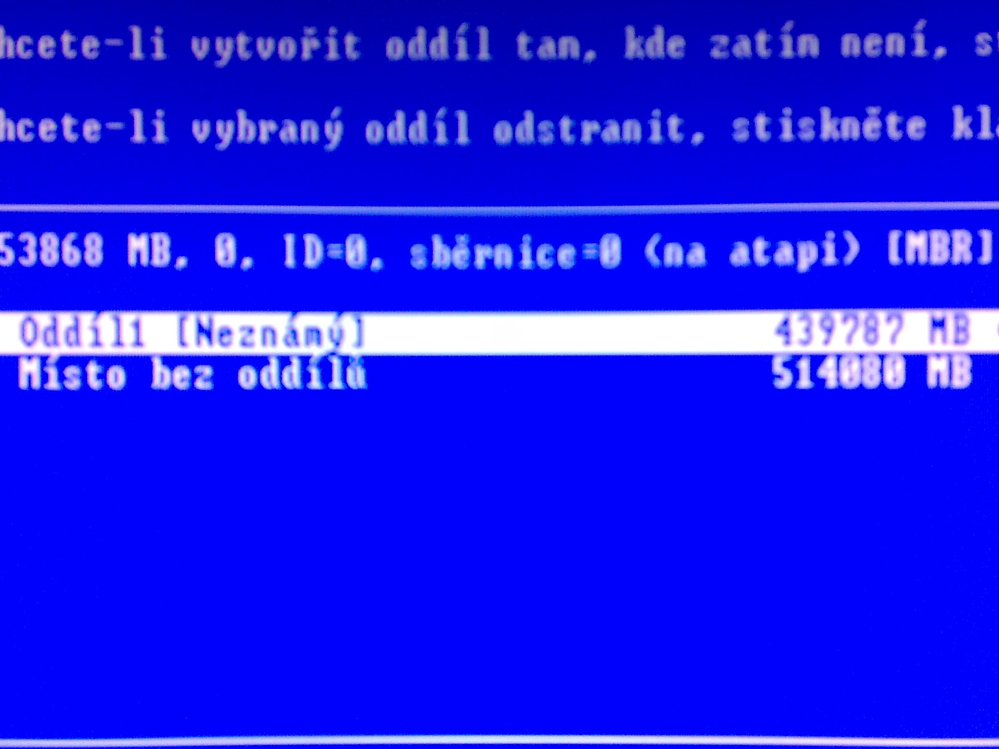 Ted instaluji zase xp a pred instalaci pri vyberu oddilu tak ukazuje ze disk je 1tb ale jen jeden aktivni oddil. Viz foto... Co s tim? diky