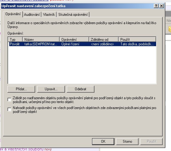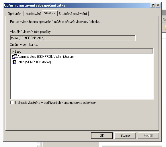 Myslím si, že mám všechna oprávnění co můžou být. Jo...můj účet se jmenuje "tatka" a složka kterou chci převzít se jmenuje taky "tatka"