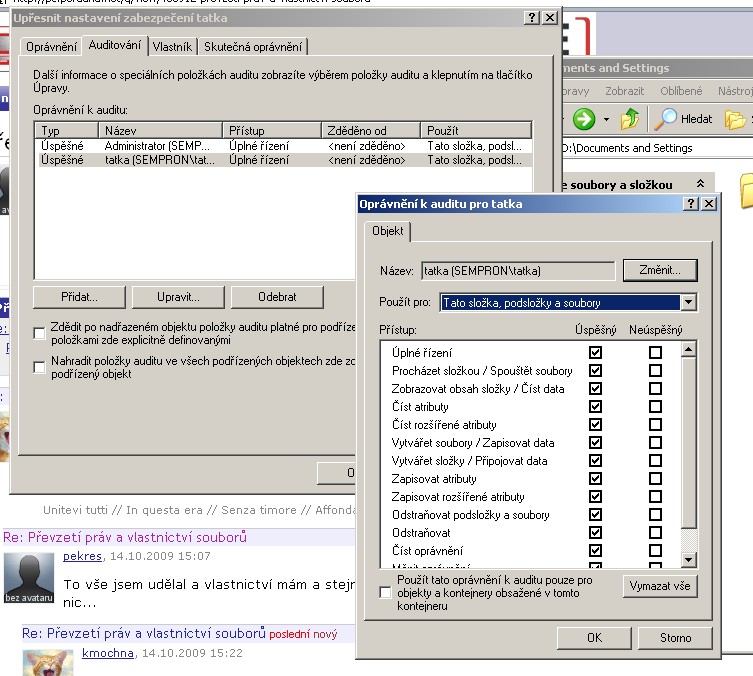 Myslím si, že mám všechna oprávnění co můžou být. Jo...můj účet se jmenuje "tatka" a složka kterou chci převzít se jmenuje taky "tatka"