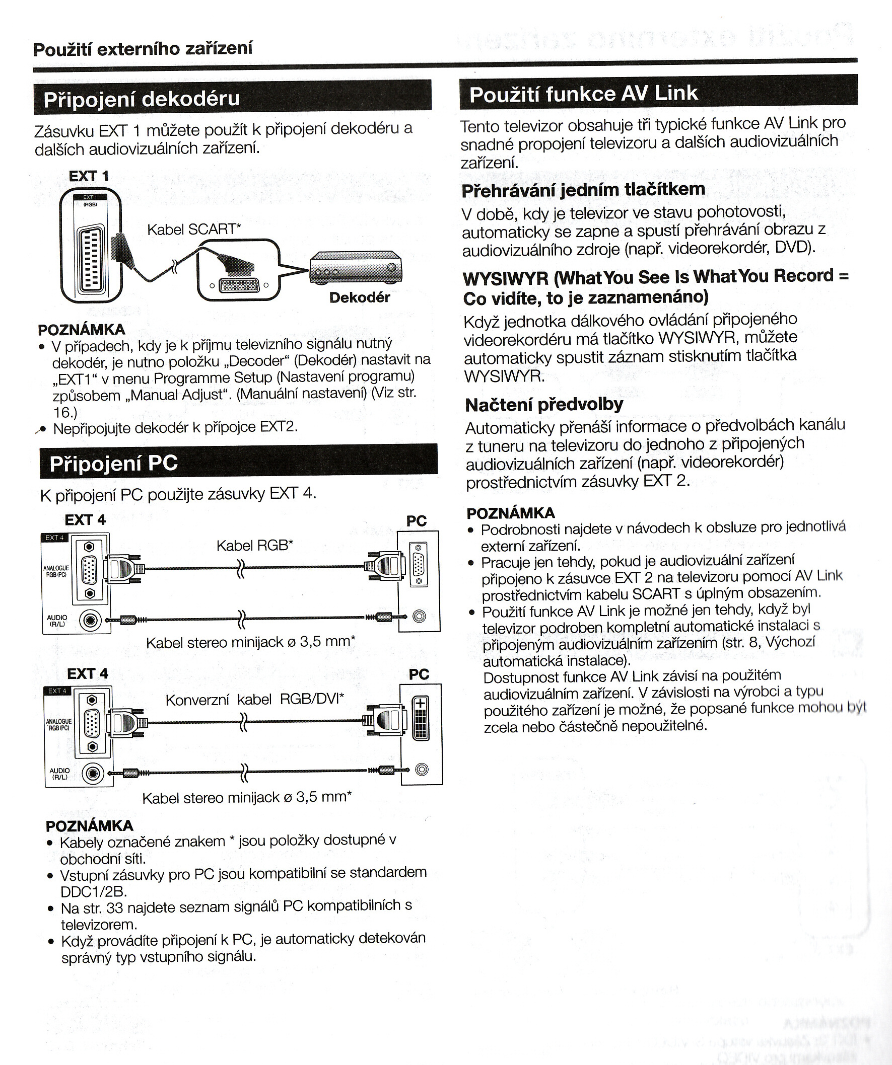 Vidis v tom rozdiel? Ak ano tak konecne napis jaky mas volny konektor na grafike a jake mas konektory na TV (pozri si to poriadne na TV ze jake konektory tam mas fyzicky, nie v navode navod sa robi pre viac modelov jeden. Podla navodu by si mal mat VGA (EXT4) a aj HDMI (EXT6). Z tych dvoch je lepsie HDMI, da sa prepojit s DVI na PC, ked mas na PC volny DVI konektor. NEDA sa prepojit s VGA, na to tam je ten EXT4, ked mas na PC volny len VGA konektor)