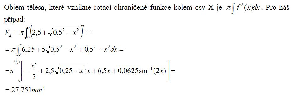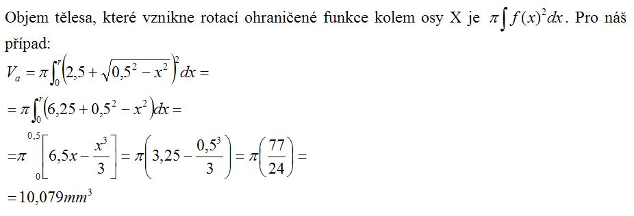 Buď můžeš integrovat celou plochu, nebo jen spočíst objemy dvou válců ("velký" a "malý" 5,3x0,7mm) plus čtvrtina objemu toroidu.