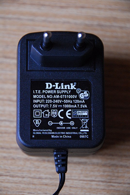 adaptér 7.5V/1A (nejdřív jsem si nevšim).