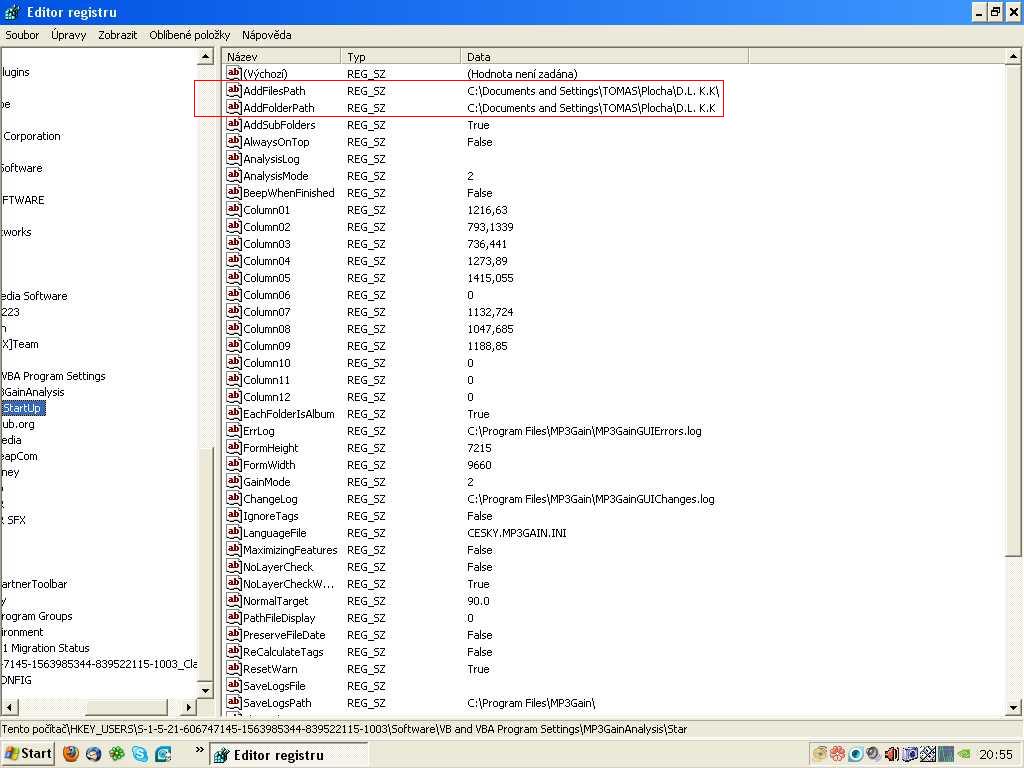 Program MP3GainAnalysis používáš? Tak se podívej do jeho nastavení a změň/smaž ten adresář.