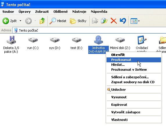 [2246-tady-zacni-jpg] Otevřeš si průzkumník Vložíš placku Klikneš na DVD jednotku pravou myší a dáš…