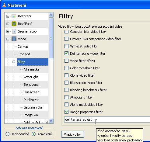 VLC player si nepamatuje nastavení deinterlace