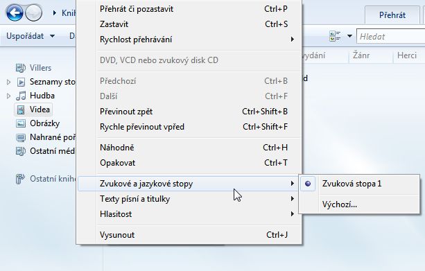 Zbytek světa bez problémů v menu. Třeba VLC audio/audio stopa