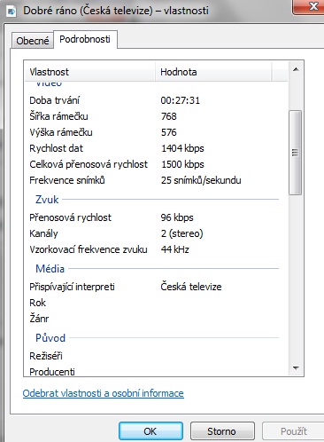 2. Po reklamě pravý klik na plochu videa - Vlastnosti - záložka Soubor