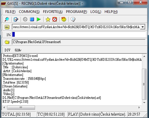 a vložit jej do prográmku (instalace ani ne 1 MB) GetASFStream (Ver2.3.0.0c):