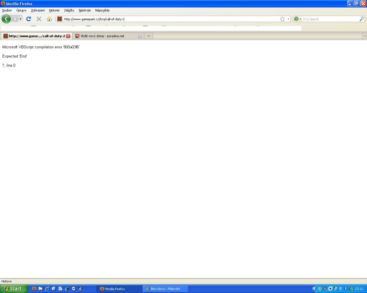 Zdravím posledni dobou pri otevřeni jedne stránky na gameparku se mi obevuje chyba Microsoft VBScript compilation error '800a03f6'
