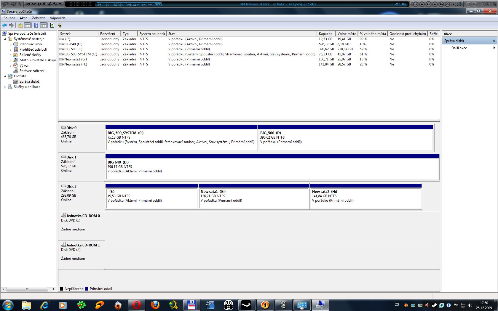 Vše bylo plně funkční, nic jsem neinstaloval, ale z ničeho nic mi najednou zmizí jeden HDD, který je rozdělen na 2 party a fyzická paměť skočí na konstantních 50 % a musím restartovat.