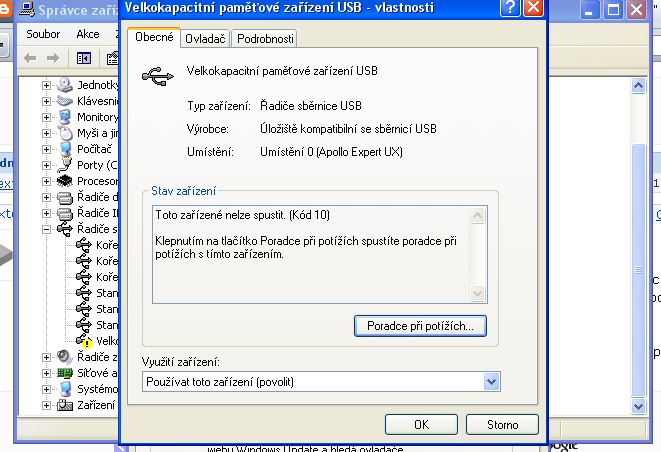 Je mozne ze mas nainstalovane nejake ovladace pre nejaky fotak alebo iny USB srot a ten sa cpe aj sem, v tom pripade odinstalovat ten ovladac alebo nainstalit Win nanovo. Ked nepomoze ani novy Win tak je vadne to USB zariadenie (prevodnik USB-IDE v nom apod)