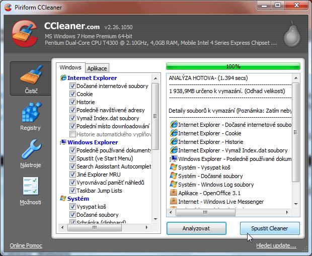 Zdravim, projel jsem pc ccleanerem naslo mi to 14gb souboru na smazani, ale nevim jak to smazat nikdy jsem s timto programem nepracoval mohly by jste mi nekdo rici, kde najdu zalozku smazat nebo neco takoveho? diky a prominte za takto primitivni otazku mam tento program prvni den .. diky vsem