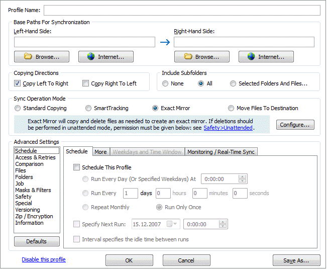 Program na asymetrickú zrkadlovú zálohu adresárov