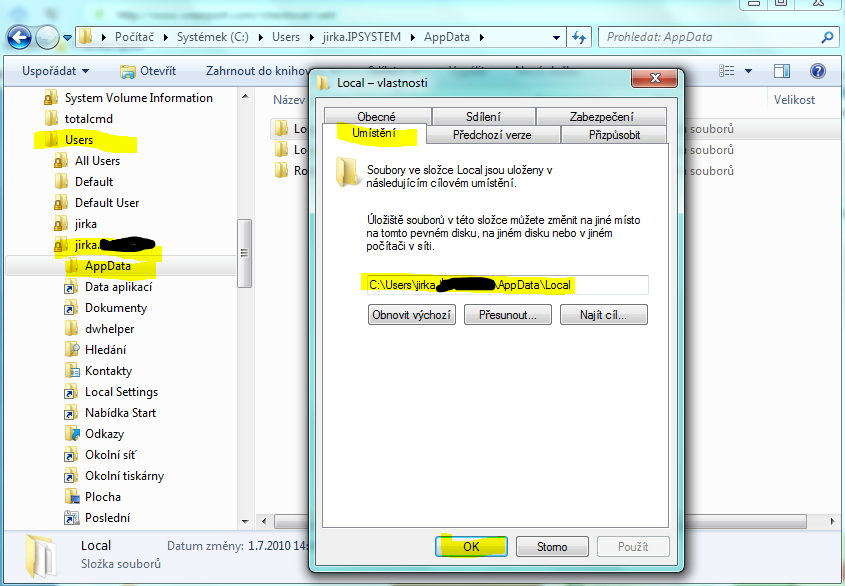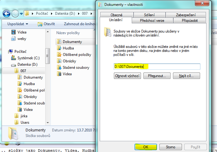 Přesunutí profilu uživatele či jen dokumentů na D: Windows 7